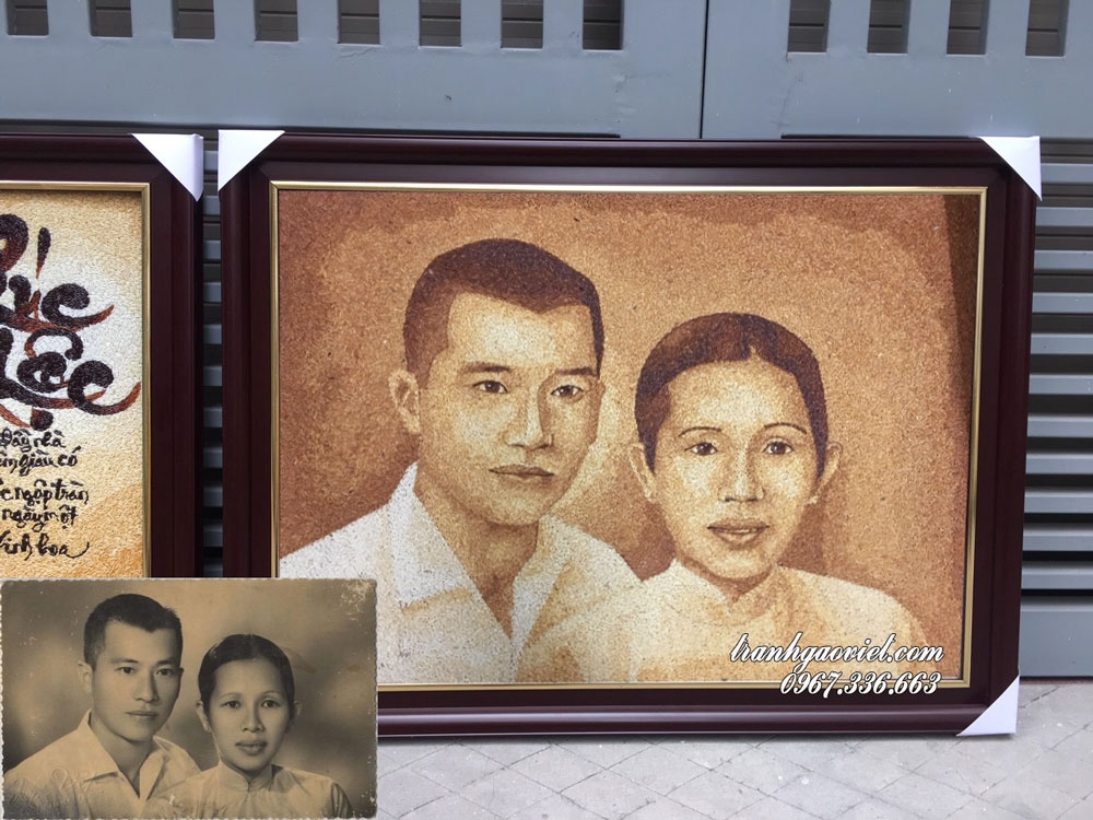 Tranh gạo chân dung 2 bác thời trẻ. Món quà tặng ý nghĩa khách đặt