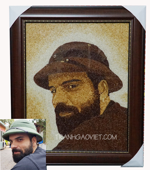 Tranh chân dung được xếp bằng hạt gạo ăn hàng ngày. Tranh của khách hàng đặt làm quà tặng đối tác, đồng nghiệp... của mình