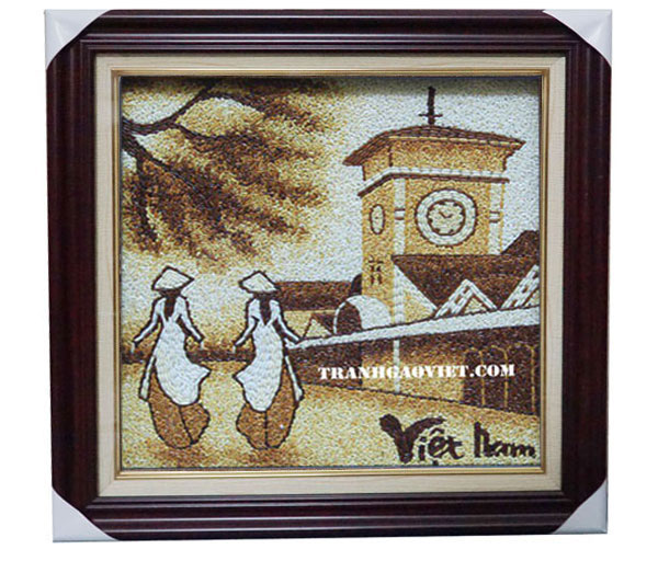 Tranh gạo phong cảnh- chợ Bến Thành món quà tặng độc đáo ý nghĩa cho người nước ngoài