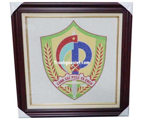 Tranh gạo logo của PCCC do khách hàng đặt Tranh Gạo Việt làm