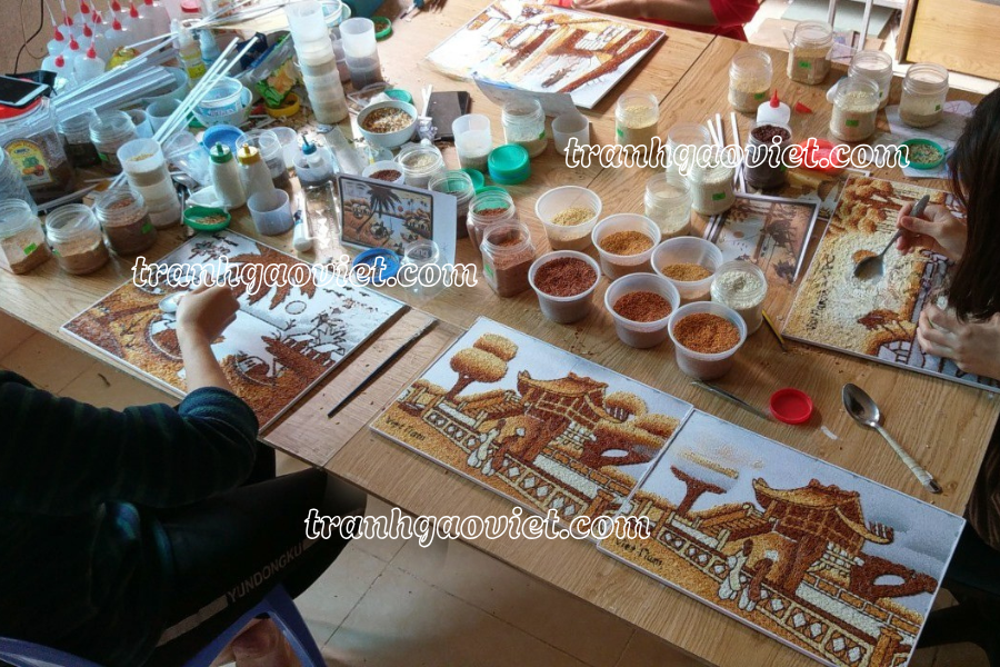 Bằng sự kỳ công và tỉ mỉ, từng hạt gạo được chọn lựa cẩn thận và xếp đặt khéo léo từng chi tiết, chọn lọc từng hạt gạo. Mỗi một hạt gạo như là một cánh hoa, một ánh sao hay chỉ đơn giản là một nét xếp nhỏ xinh. Nhìn vào tranh gạo, ta có thể cảm nhận được những tâm hồn sáng tạo, sự kiên trì và tình yêu nghệ thuật vô bờ bến mà người nghệ nhân đã thể hiện trong mỗi bức tranh.