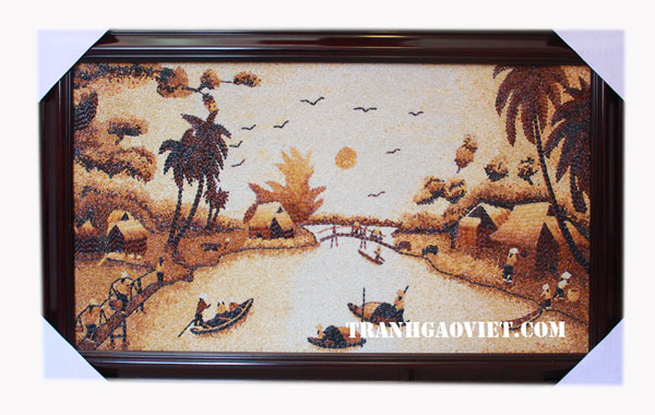 Tranh gạo sông quê, tranh gạo phong cảnh