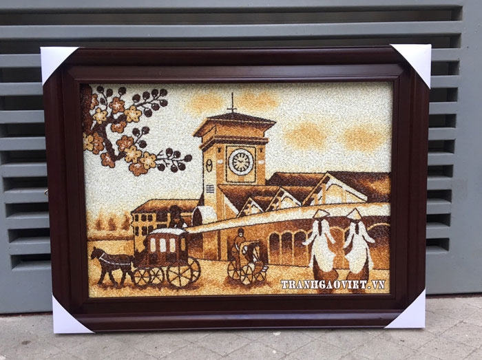 Tranh gạo Chợ Bến Thành được xếp thủ công độc đáo và ý nghĩa thích hợp làm quà tặng người nước ngoài mang đậm hình ảnh và nét văn hoá Việt Nam