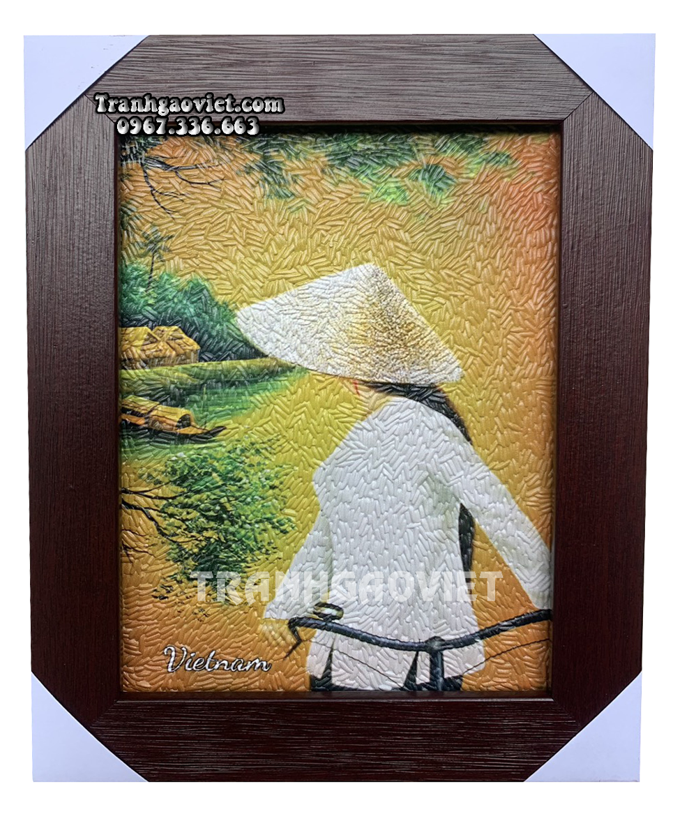 Mang hình ảnh quen thuộc của cô gái áo dài VN xưa , bức tranh nhỏ gọn phù hợp làm quà tặng bạn bè quốc tế hoặc trang trí bàn làm việc.