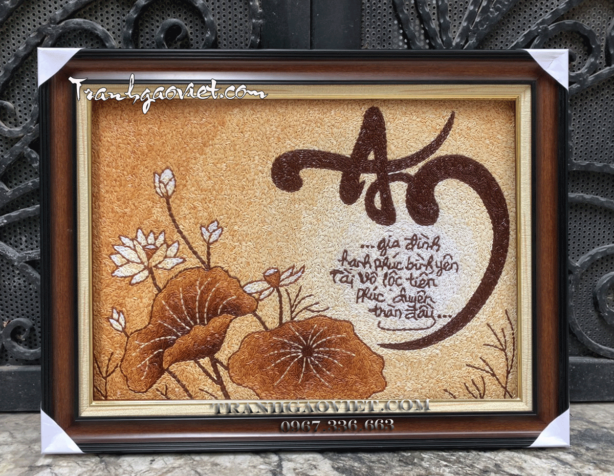 Tranh gạo thư pháp chữ An là biểu tượng của mong muốn hòa bình và sự an lành cho gia đình. Khi treo tranh gạo chữ "An" trong nhà, người ta tin rằng