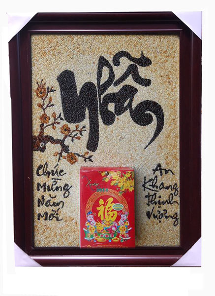 Tranh gạo chữ nhẫn, tranh thư pháp được làm từ hạt gạo