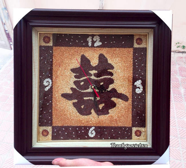 Tranh gạo đồng hồ xếp chữ thư pháp mẫu khách đặt làm quà tặng đối tác