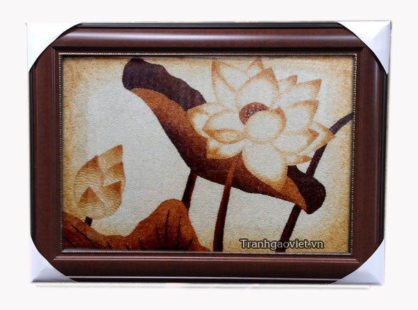 Bức tranh hoa sen được làm bằng gạo mang đậm dấu ấn quê hương việt nam