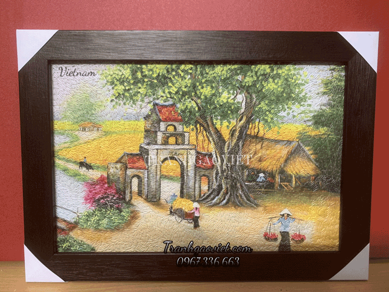 Tranh làng quê với cổng làng như tái hiện lại cuộc sống, và những giá trị thân thuộc, đẹp đẽ của làng quê. Đây vừa là phong cảnh đẹp trang trí nhà cửa. Vừa là văn hóa phẩm gìn giữ những giá trị truyền thống cho các thế hệ sau.