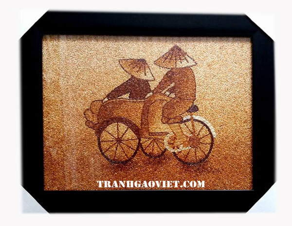 tranh gạo xe xích lô mộc mạc, giản dị như lưu trữ lại những giá trị xưa cũ khiến tâm hồn tĩnh lặng, loại bỏ những ồn ào của cuộc sống hiện đại.